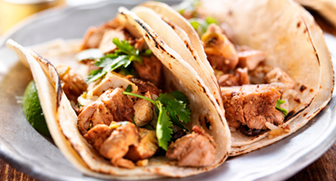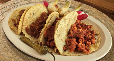 Pollo. Orden de 4 tacos con tortilla recién hecha, incluyen guarnición.
